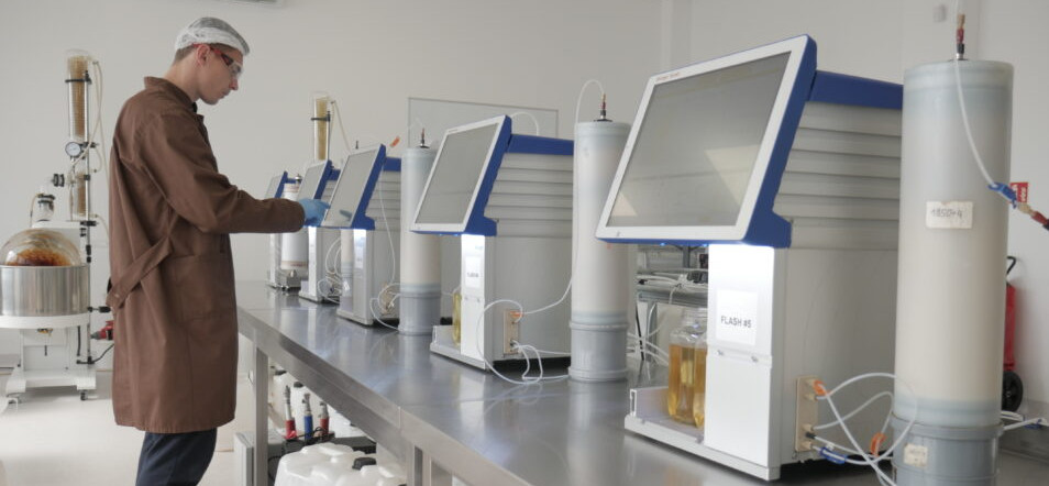 当社では、使用するヘンプバイオマスの特性に合わせて、最終製品として望ましい成分バランスが得られるよう、独自の抽出プロセスを設計しています。